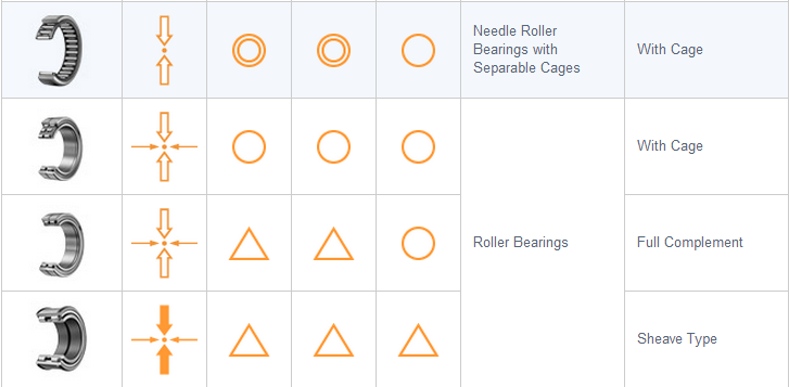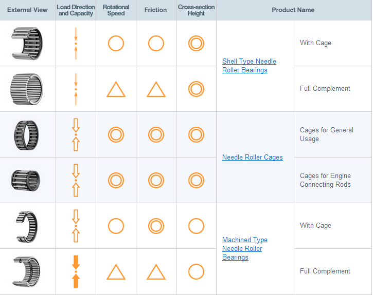 Needle roller bearings are rotational motion bearings in which a thin needle-shaped roller is incorporated into a rolling element. They have a low cross-section height and high load capacity compared with ball bearings. Being small, needle roller bearings contribute to reducing overall machine size, and are thus widely used in various applications such as automobiles, motorcycles, printing presses, industrial robots and construction equipment